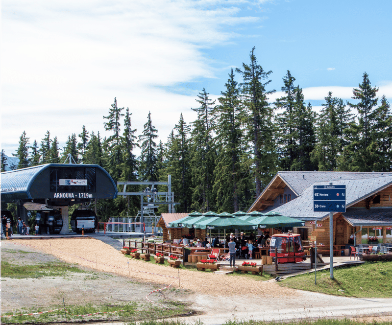 En été, du côté de l'Arnouva, dans l’espace famille faites le plein de sensations fortes en famille avec le karting de montagne ou les quads électriques et profitez d'un instant de repos sur la terrasse du restaurant.
